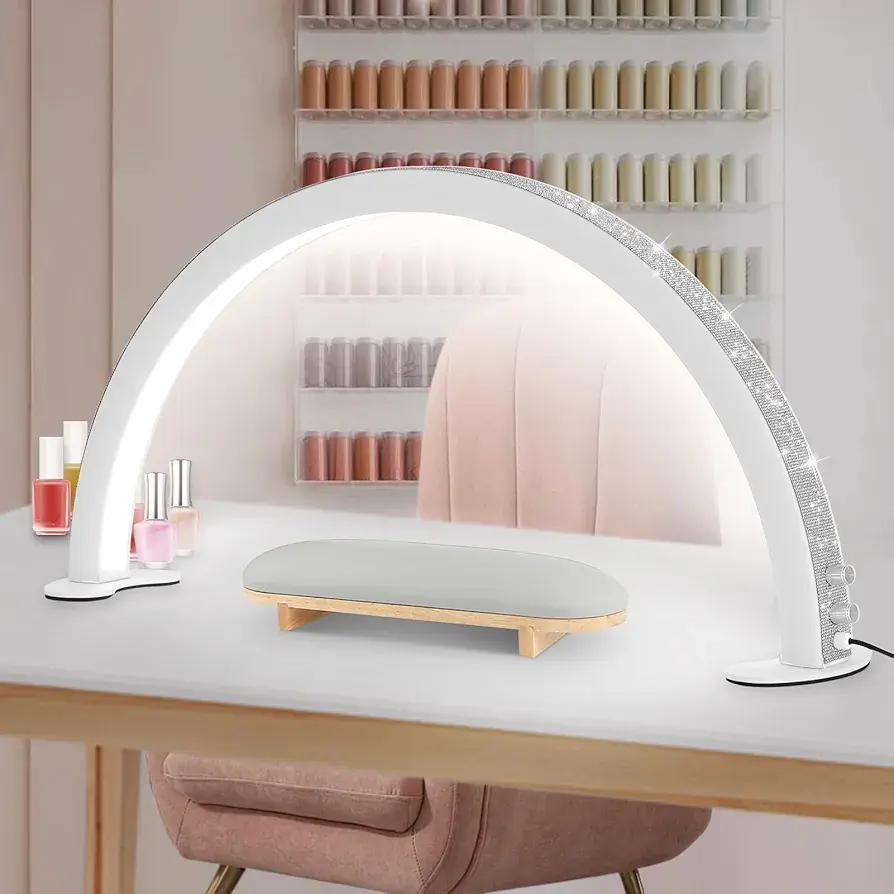 Half Moon Nail Desk Lamp, Moon Lamp for Nails with Stepless Dimming and 3 Color
